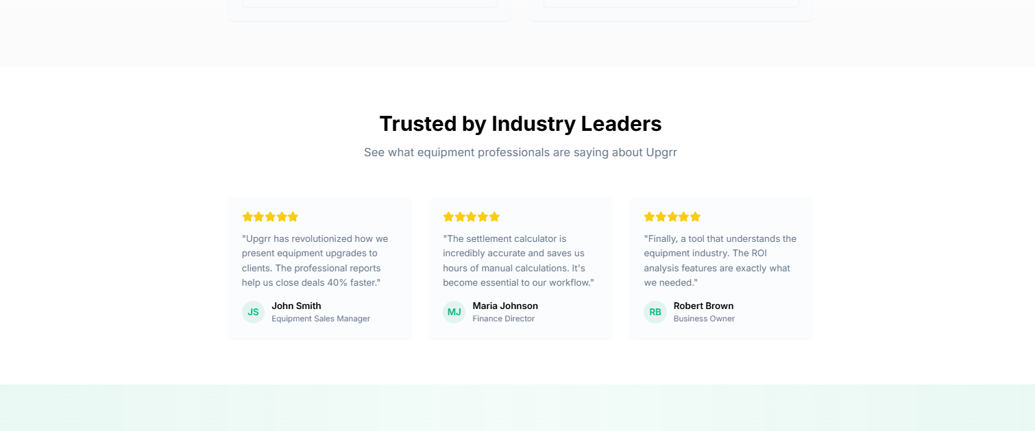 Upgrr eliminated the industry's biggest sales bottleneck — replacing slow, error-prone Excel analysis with instant, accurate financial reports that give consultants the credibility to close.