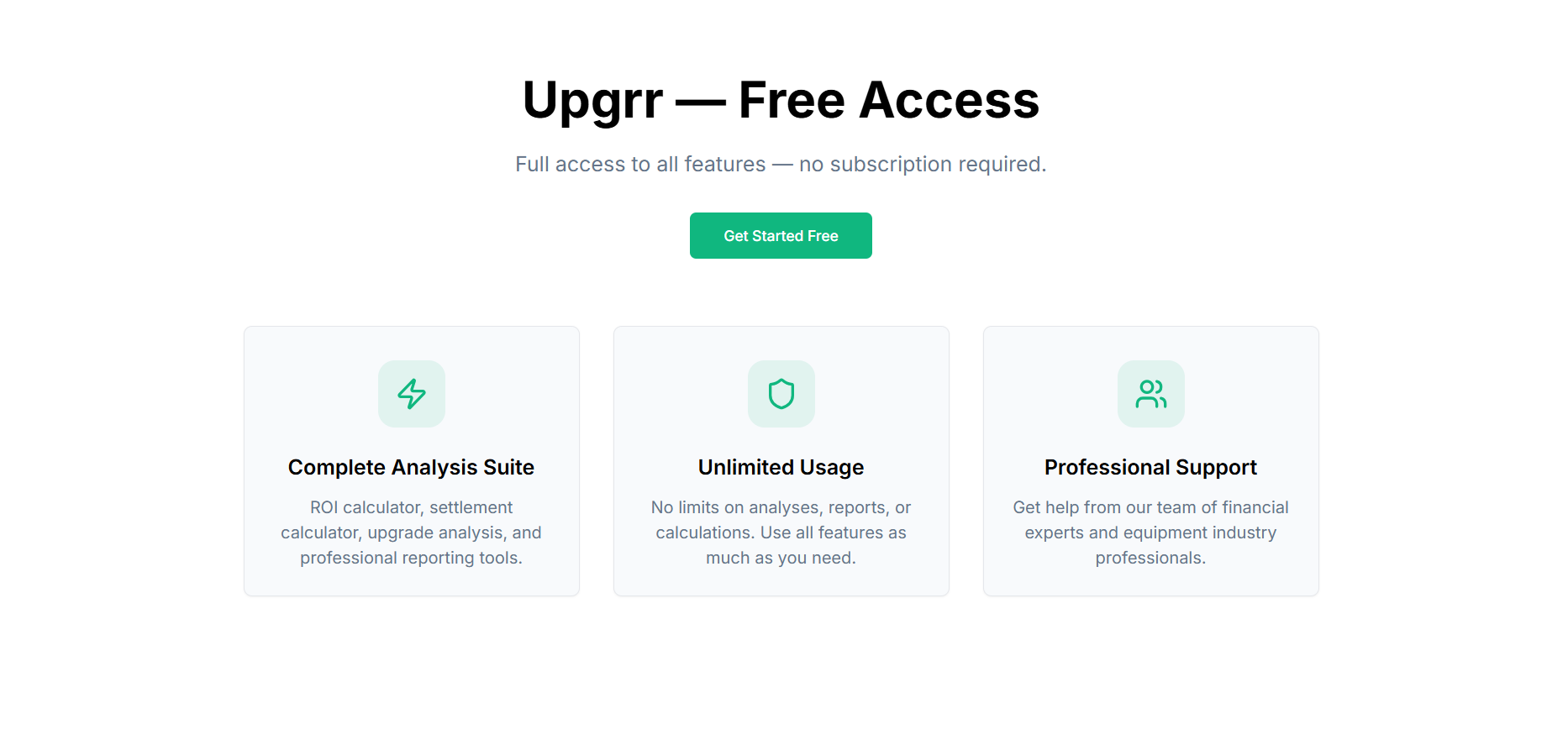 Upgrr isn't a generic financial tool — it's the only platform built specifically for the printing equipment industry, giving every sales consultant the analytical credibility to close deals that are good for everyone at the table.